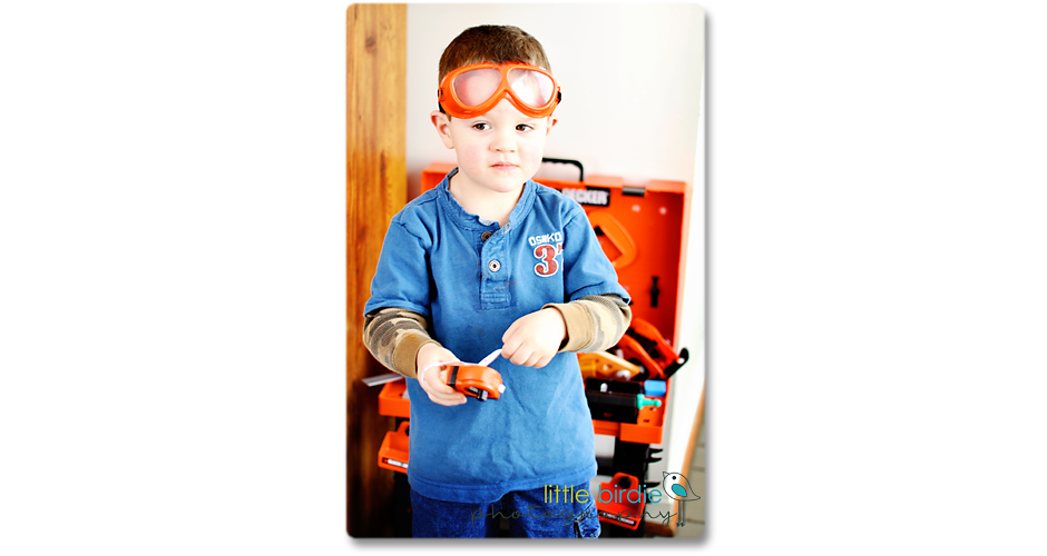 The boys had such a great time at Makenna's birthday party today. Brady had a blast playing with her Black & Decker tool bench. The funny part is that we have the *same* tool bench at home and he never touches it!